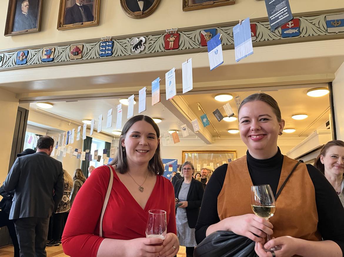 Iloisia ilmeitä, hilpeyttä - mutta myös herkkiä muistoja sekä syvällisyyttä. Yrjönpäivän juhlissa Bottalla eurovaalikampanjan aloittanut Eija-Riitta Korhola sekä KD:n puheenjohtaja, ministeri Sari Essayah. (Kuvat Yrjön-päivän bileistä: Kristiina Kunnas)