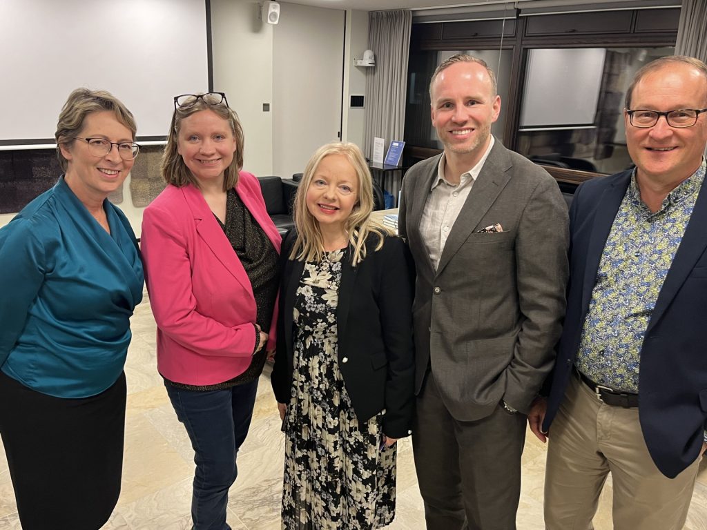 Kristillisdemokraattien puoluehallitus kokoontui ennen lauantain kokoustaan strategiaseminaariin. KD:n puheenjohtajisto sekä puoluevaltuuston puheenjohtaja yhteiskuvassa perjantaina 24. lokakuuta: puheenjohtaja Sari Essayah, 2. varapuheenjohtaja Sirpa Pursiainen-Hautala, 3. varapuheenjohtaja Susanna Kokkonen, 1. varapuheenjohtaja Mika Poutala sekä puoluevaltuuston puheenjohtaja Jukka Palokangas. (Kuva Kristiina Kunnas)