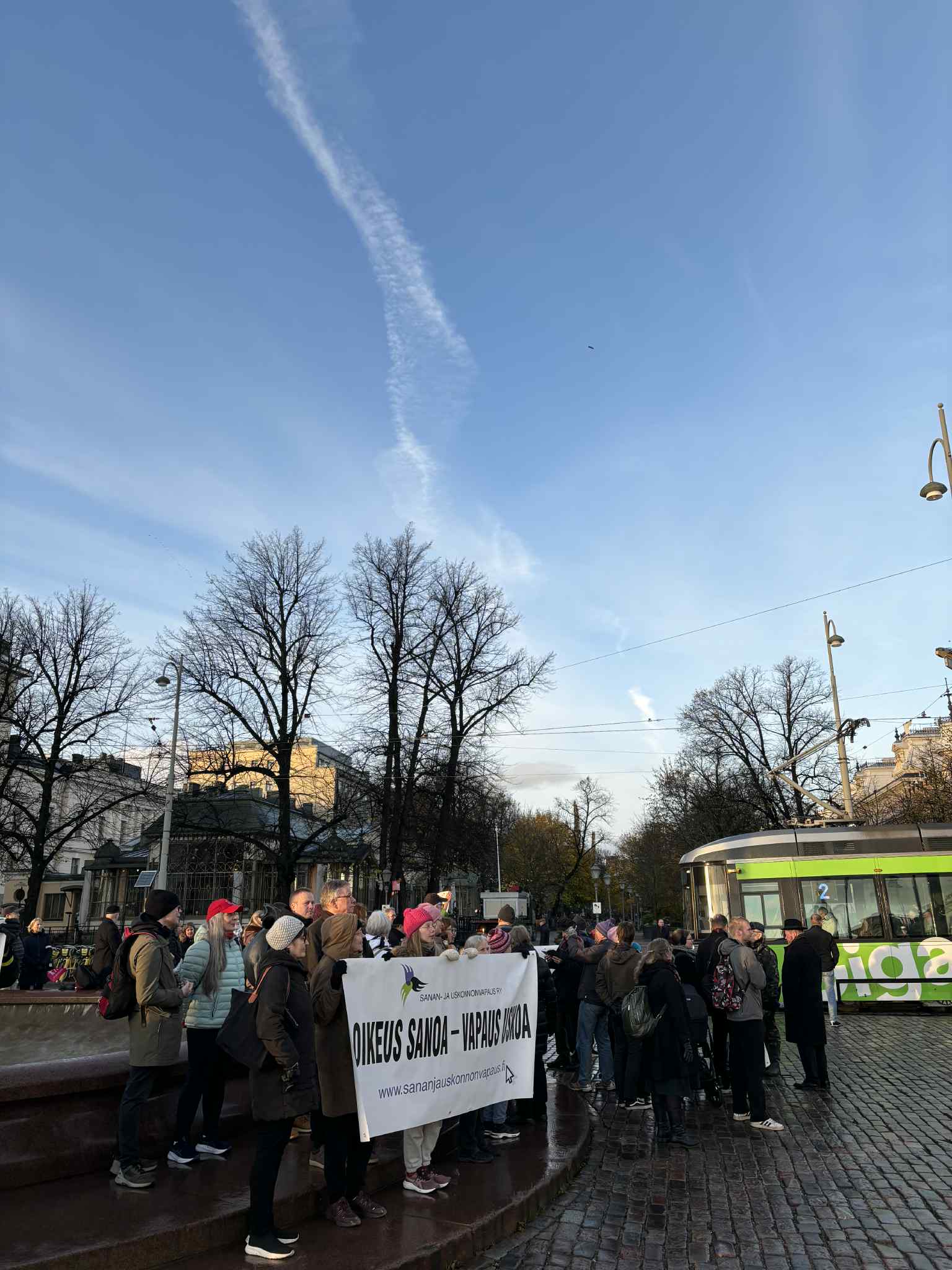 Tukimielenilmaus kokoontui aamulla Mantan patsaalla – Päivi Räsäsen Korkeimman oikeuden kuuleminen meneillään