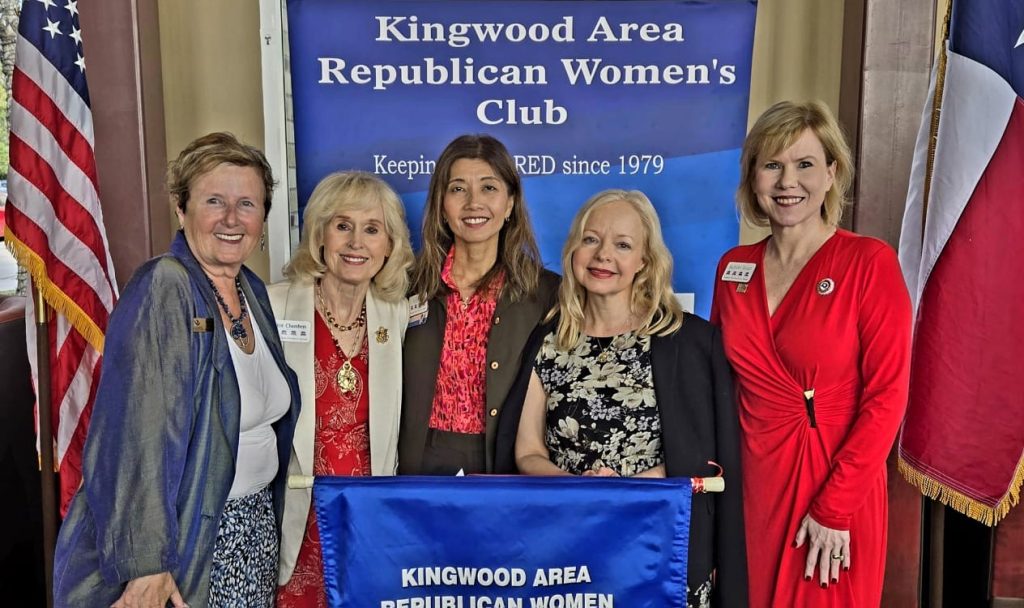 Kristillisdemokraattien 3. varapuheenjohtaja Susanna Kokkonen republikaaninaisten ympäröimänä heidän järjestämässään veteraanipäivän tapahtumassa Houstonissa Texasissa.