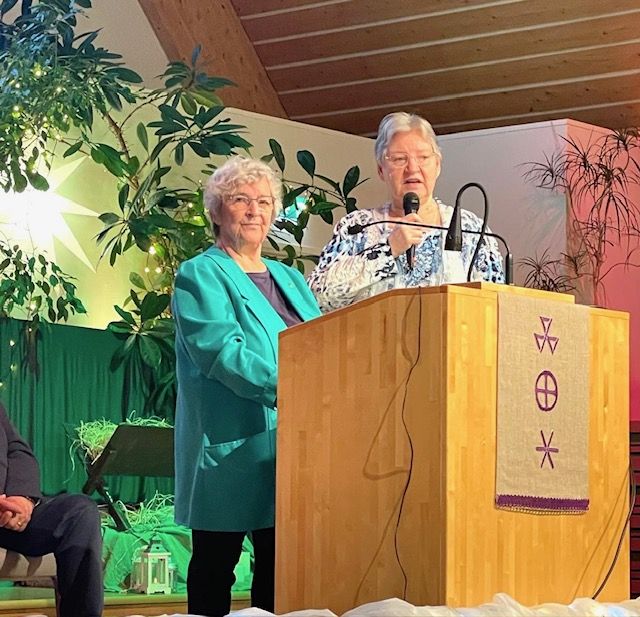 Maija Hurri (vasemmalla) haastatteli Marja Kauhasta, joka on yhdistyksen perustajajäsen ja palvellut työssä 25 vuotta eli alusta lähtien. (Kuva Anita Hurri)