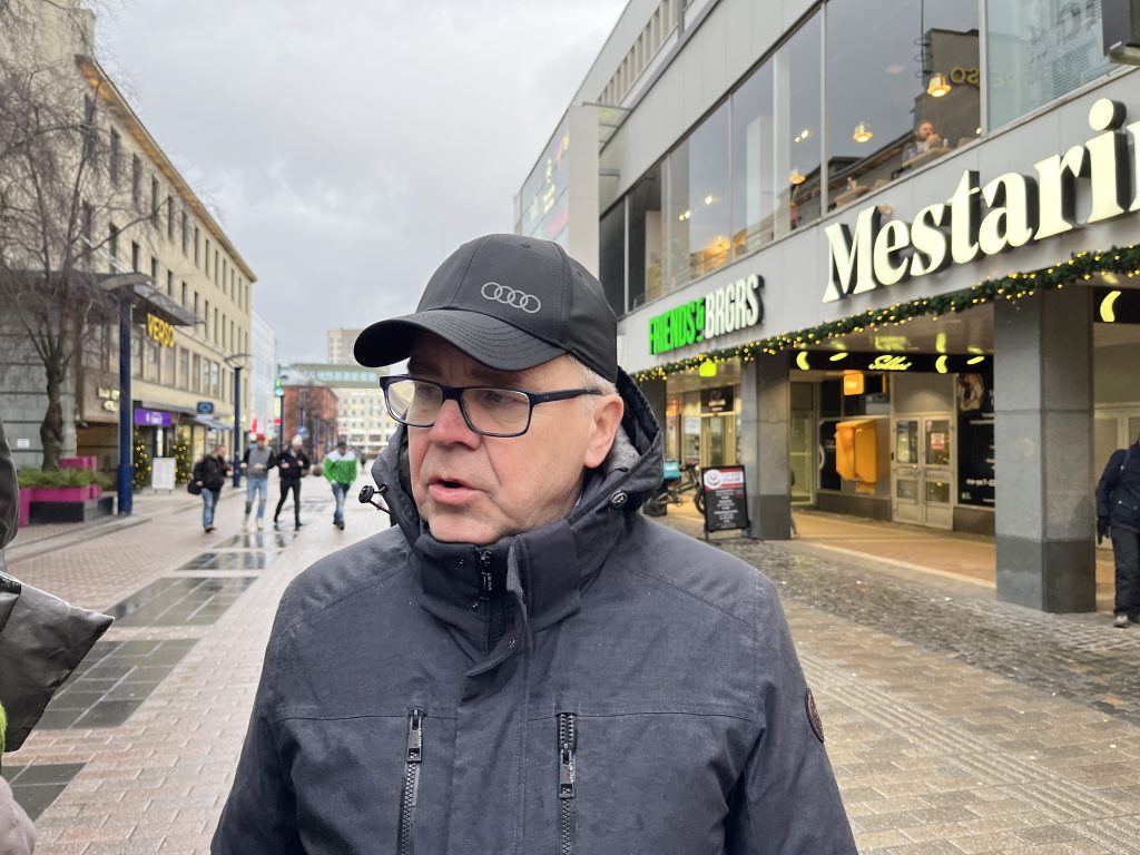 Peter Östman kuvattiin Jyväskylän keskustan kävelykadulla ensimmäisen advetin alla 29.11.2025. (Kuva: Samuli Rissanen)