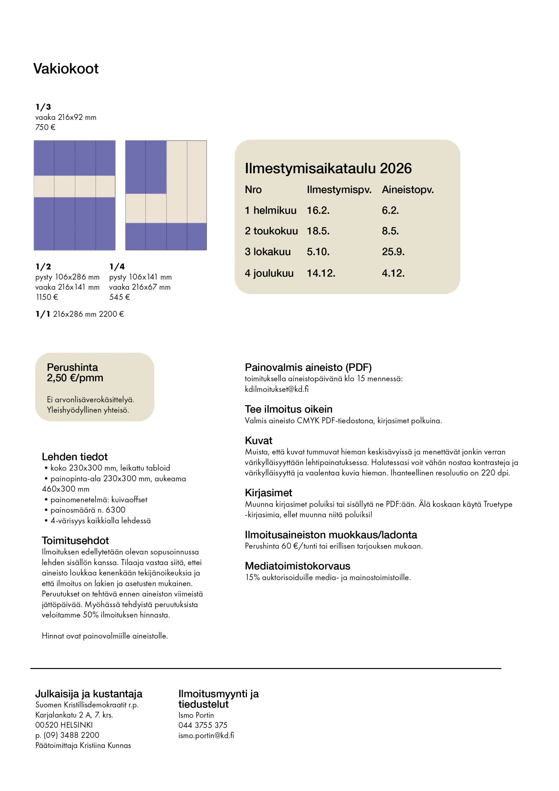 Katso tarkemmat tiedot mediakortista: Mediakortti_KD Lehti_2026